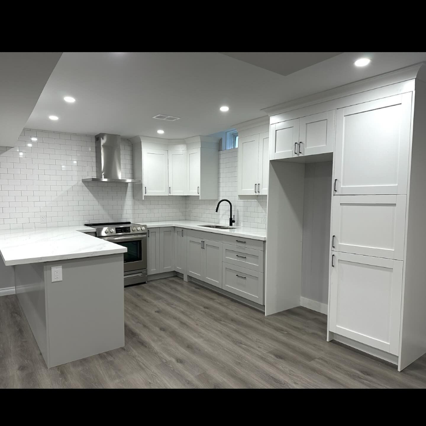 1 bedroom in law basement suite. Creating more living space. #baeumlerapproved #beforeandafter #bathroomdesign #bathroomreno #basement #basementtransformation #basementreno #decorate #kitchen #kitchendesign #kitchendecor #kitchenrenovation #renovationsButton