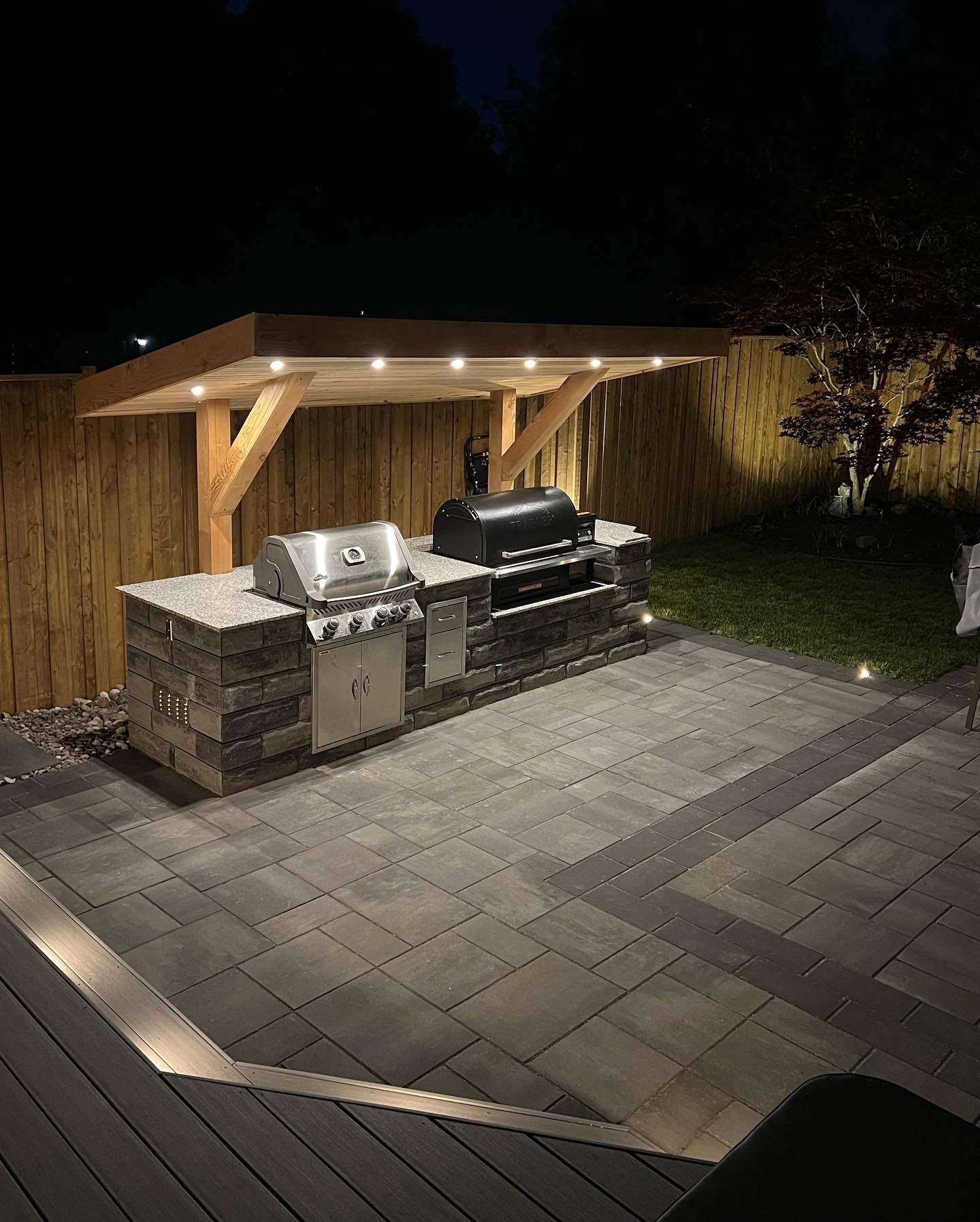 Wouldn’t mind bbqin here for Canada day, Happy Canada day ppl! @unilock #woodwork #Napoleon #traeger #outdoorkitchen #stonework #pine #outdoorstructureButton