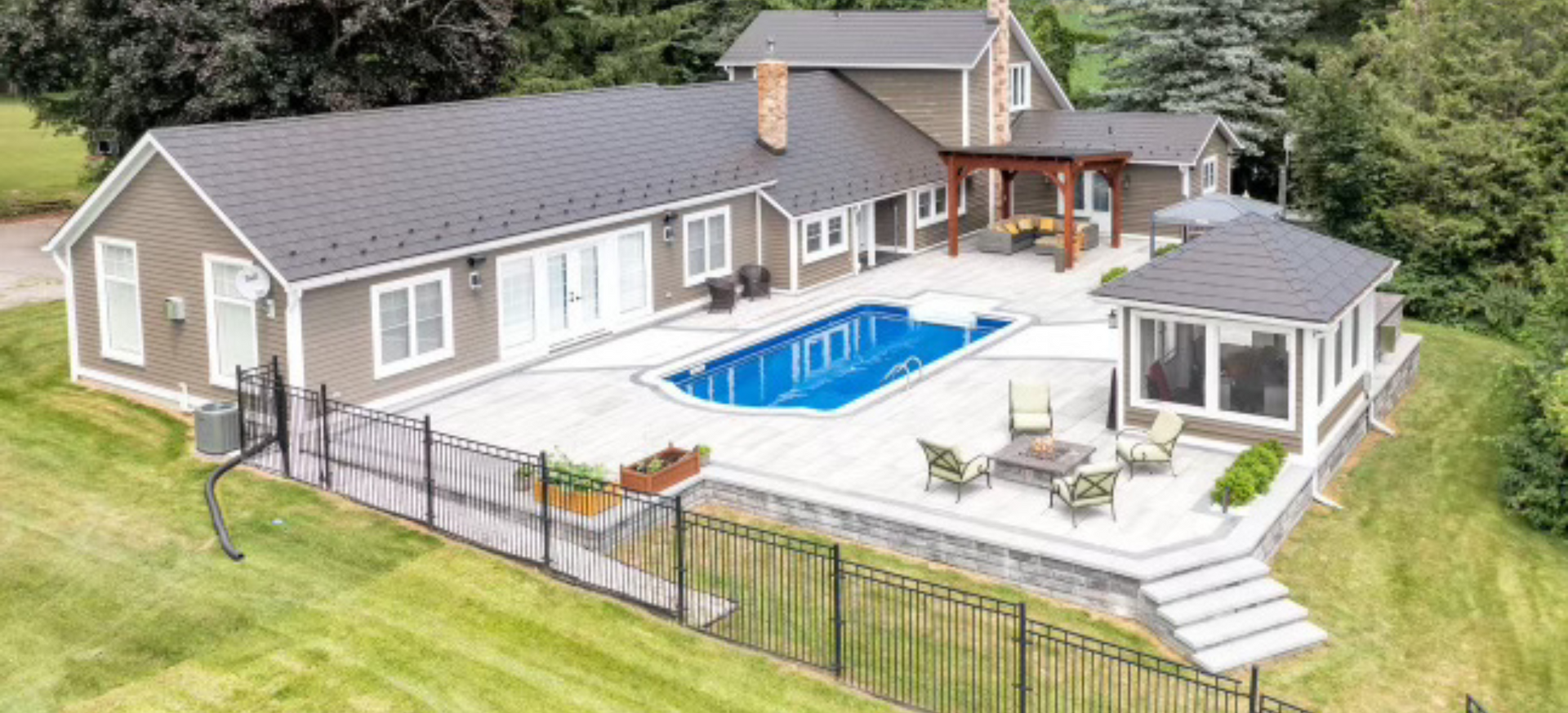 A project we completed last year including crazy pool renovation with all the works. A great addition and upgrade to a beautiful property in Orono. #reno #update #pool #pooldesign #backyard #backyarddesign #unilock #stone #napoleon #firepit #outdoorliving #outdoorkitchendesignButton